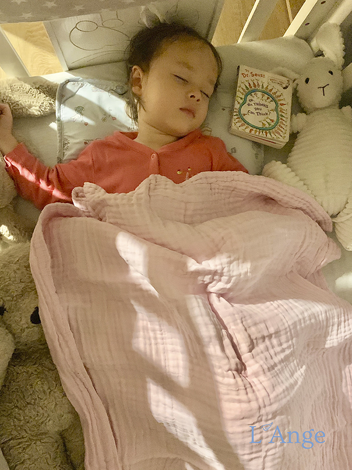 - Chưa kể đến là sự đa năng và tiện lợi của chiếc khăn này nữa. Lina rất thích chiếc khăn mềm mịn L'Ange nên đi đâu em cũng mang theo, đến ngay cả lúc ngủ cũng ôm khăn ngủ cùng. Nên mẹ Phương làm chăn đắp cho em luôn, thật bất ngờ là khăn vô cùng thoáng nhưng vẫn giữ ấm được cho Lina khi ngủ.