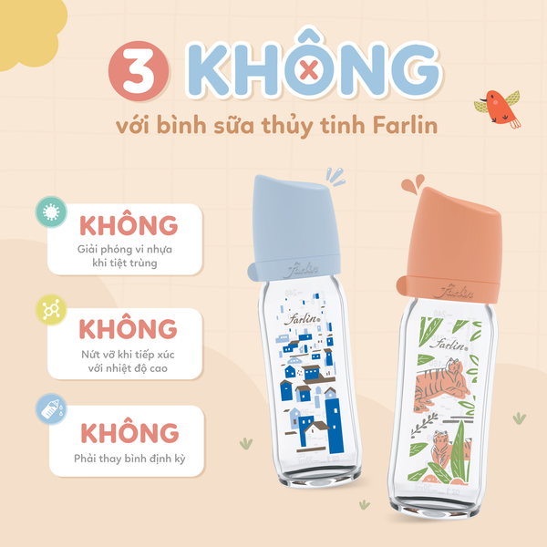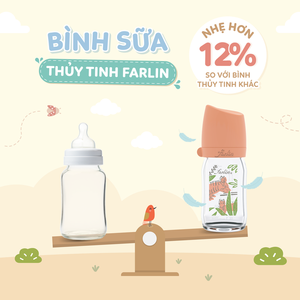 - Bình sữa Farlin thủy tinh đảm bảo độ tinh sạch tuyệt đối, không bám mùi, an toàn tuyệt đối khi tiệt trùng nhiệt độ cao.