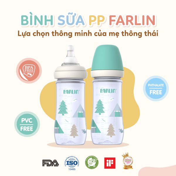 - Bình sữa Farlin PP nổi bật với trọng lượng nhẹ, giá thành phải chăng và dễ vệ sinh, phù hợp cho trẻ sơ sinh - lựa chọn đúng tiêu chí “ ngon - bổ - rẻ”