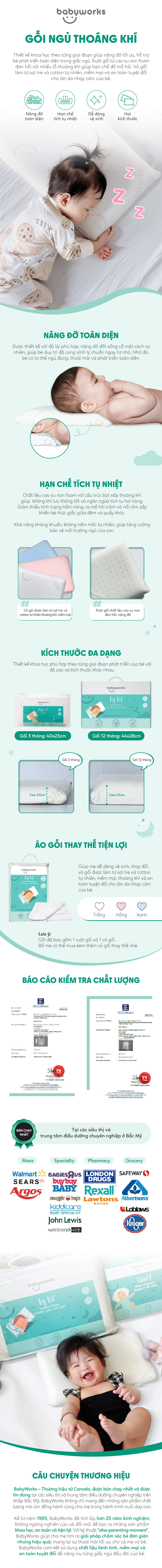 BABYWORKS GỐI NGỦ THOÁNG KHÍ MỀM MẠI, ĐÀN HỒI, NÂNG ĐỠ ĐẦU VÀ GIÚP BÉ NGỦ NGON