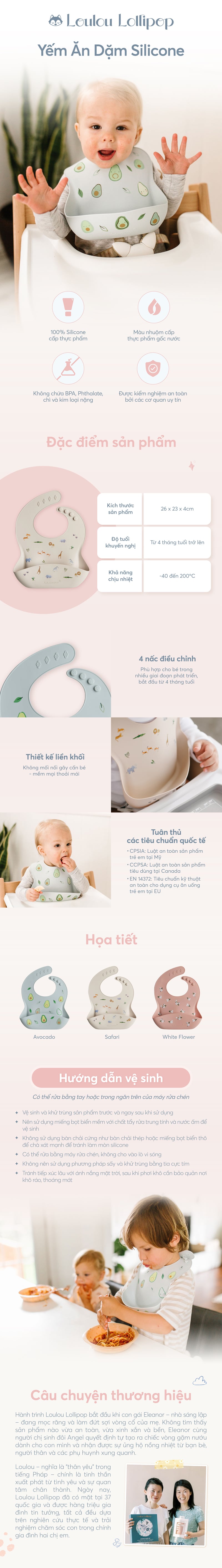 LOULOU LOLLIPOP YẾM ĂN DẶM SILICONE CAO CẤP CÓ MÁNG HỨNG CHỐNG THẤM DỄ VỆ SINH CHO BÉ