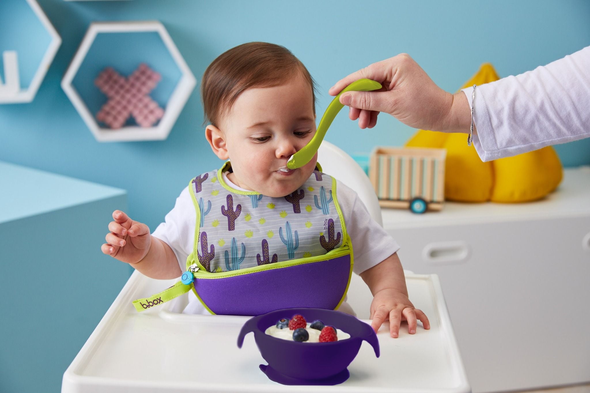 - Thiết kế phù hợp với cả phương pháp ăn dặm đút thìa hoặc ăn dặm tự chỉ huy.