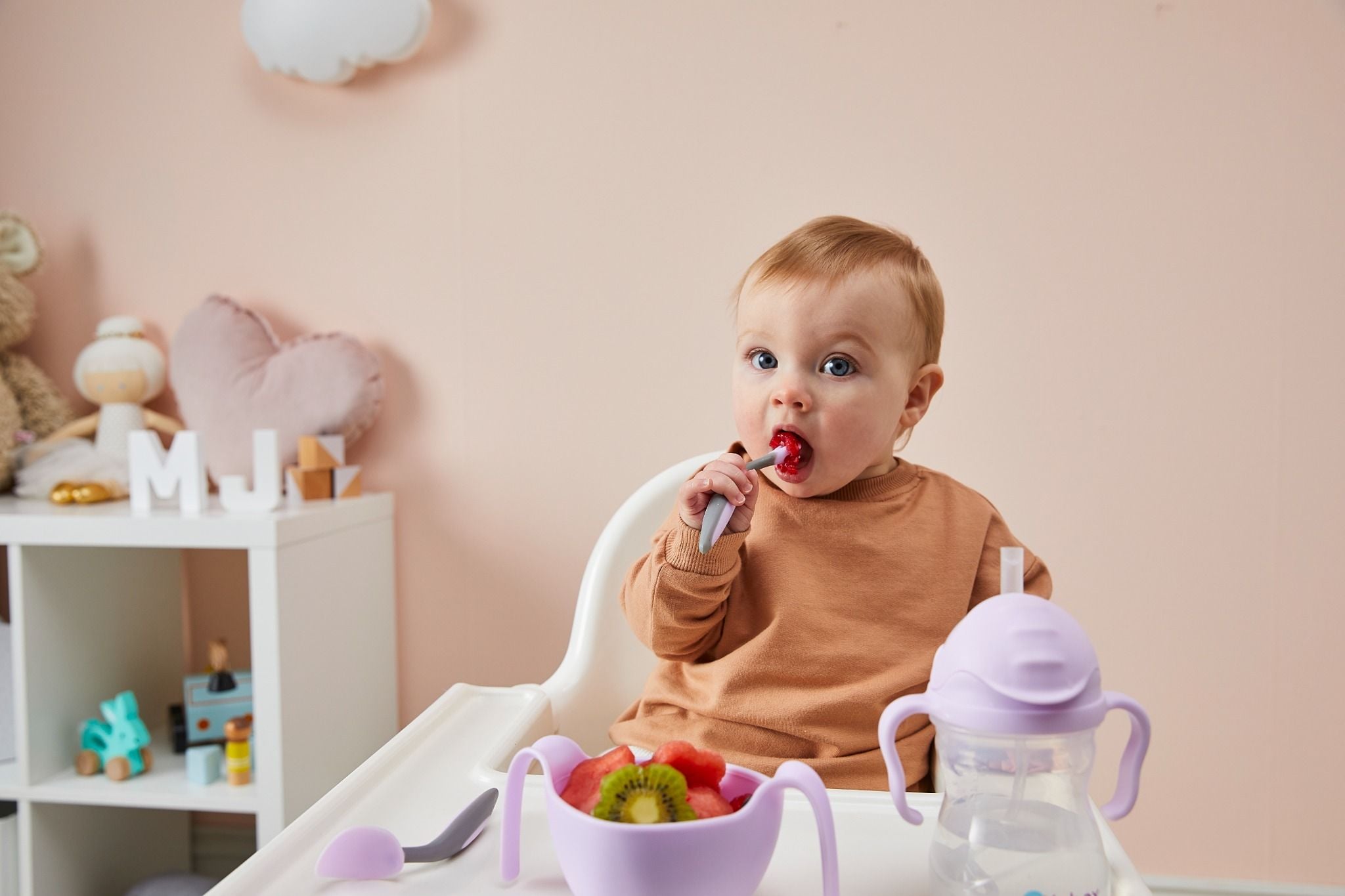 - Thiết kế hình dáng cong độc đáo phù hợp với cách cầm nắm tự nhiên của bé, bé dễ dàng tự sử dụng.