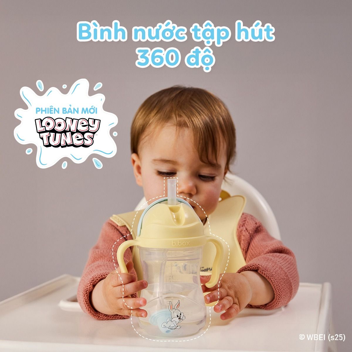 - Bình nước tập hút 360 độ b.box có thiết kế bi trọng lực đặc biệt giúp bé hút được nước từ mọi tư thế đi, đứng, nằm, ngồi.