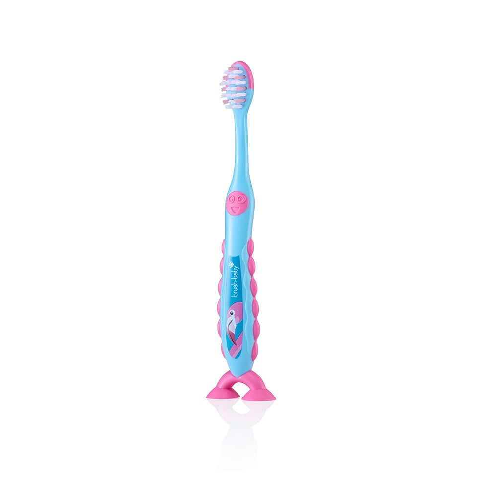 BRUSH-BABY BÀN CHẢI ĐÁNH RĂNG FLOSSBRUSH CÓ ĐẾ HÍT TIỆN LỢI, DỄ DANG LÀM SẠCH RĂNG AN TOÀN VÀ HIỆU QUẢ CHO BÉ (3 - 6 TUỔI)