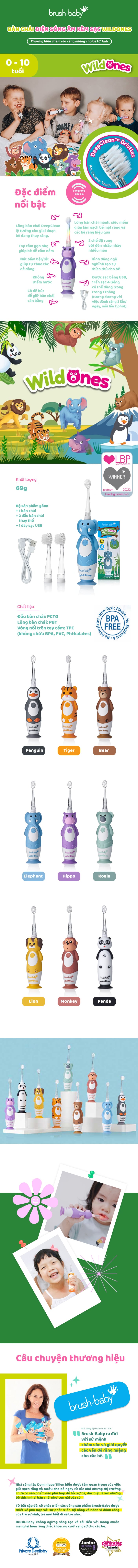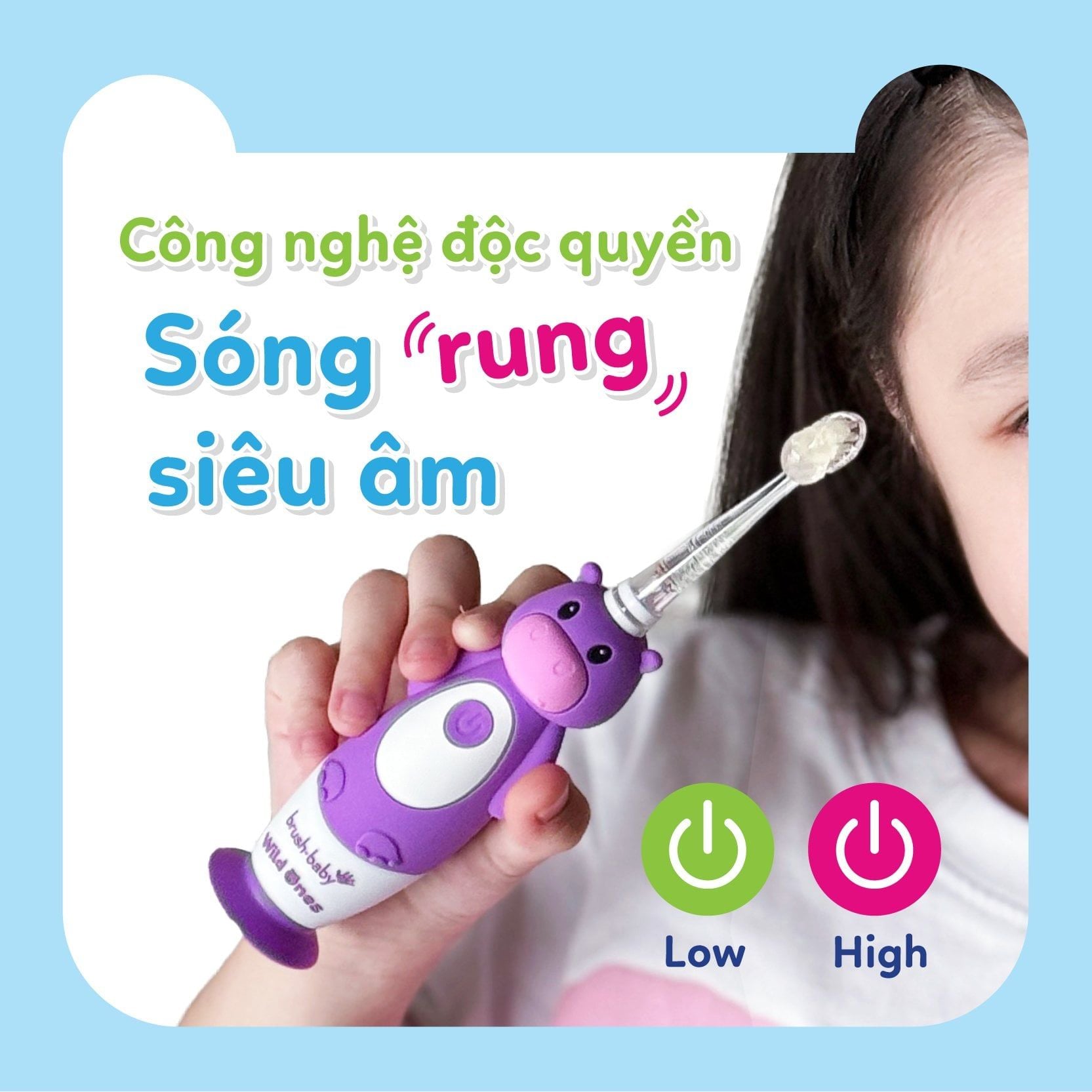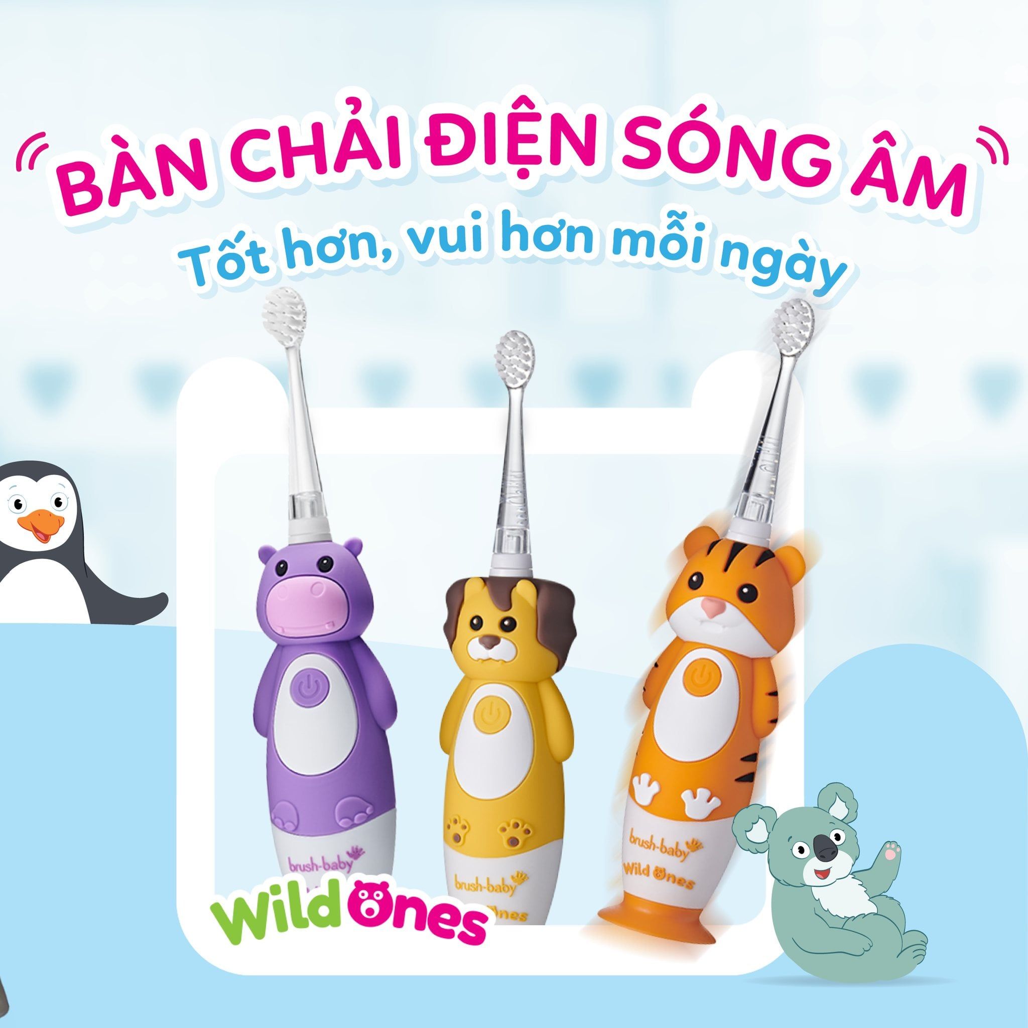 BRUSH-BABY BÀN CHẢI ĐIỆN SÓNG ÂM WILDONES KÈM SẠC, 2 CHẾ ĐỘ LÀM SẠCH RĂNG AN TOÀN VÀ HIỆU QUẢ CHO BÉ (0 - 10 TUỔI)