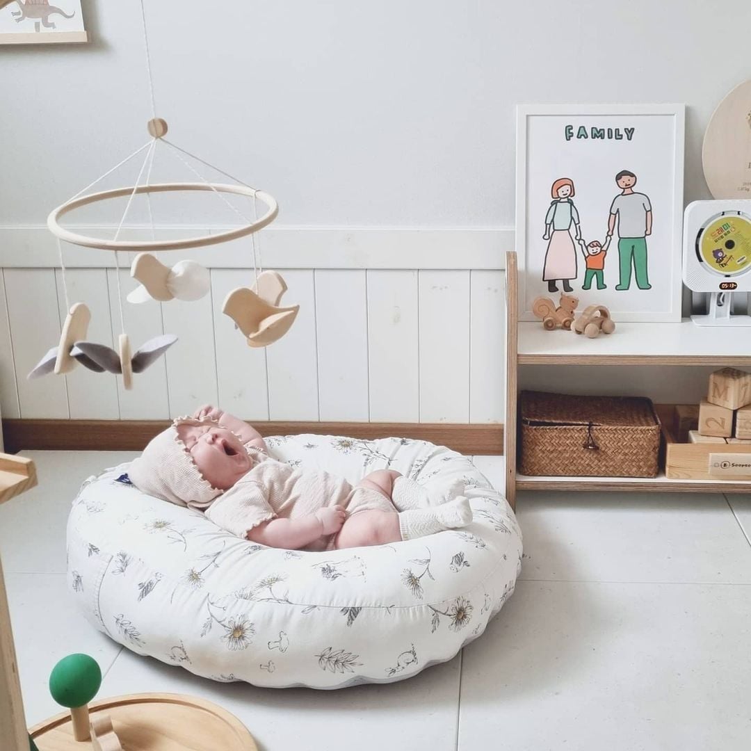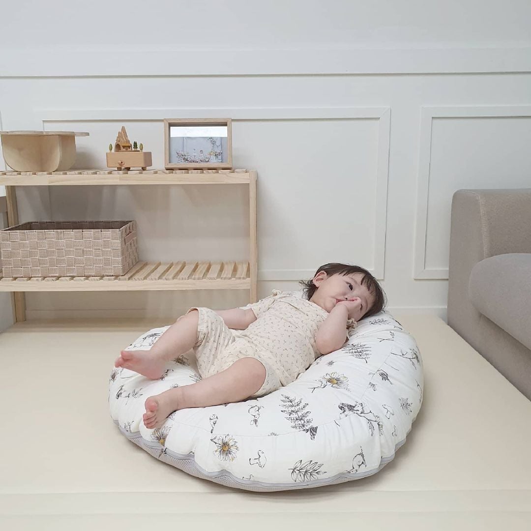 - Vị trí trung tâm của gối tạo thành đường cong hình chữ U nâng đỡ ổn định phần lưng, hông và mông của bé.
