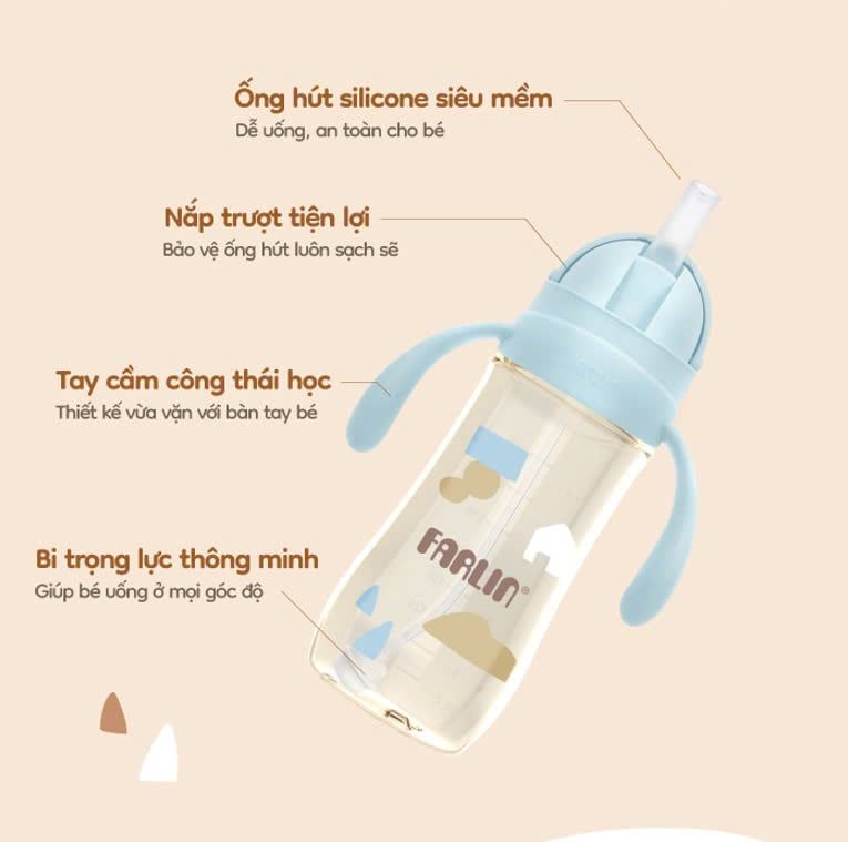 FARLIN Bình Nước PPSU 360 Độ Cho Bé Tập Uống Nước 270ml (Nắp Trượt)