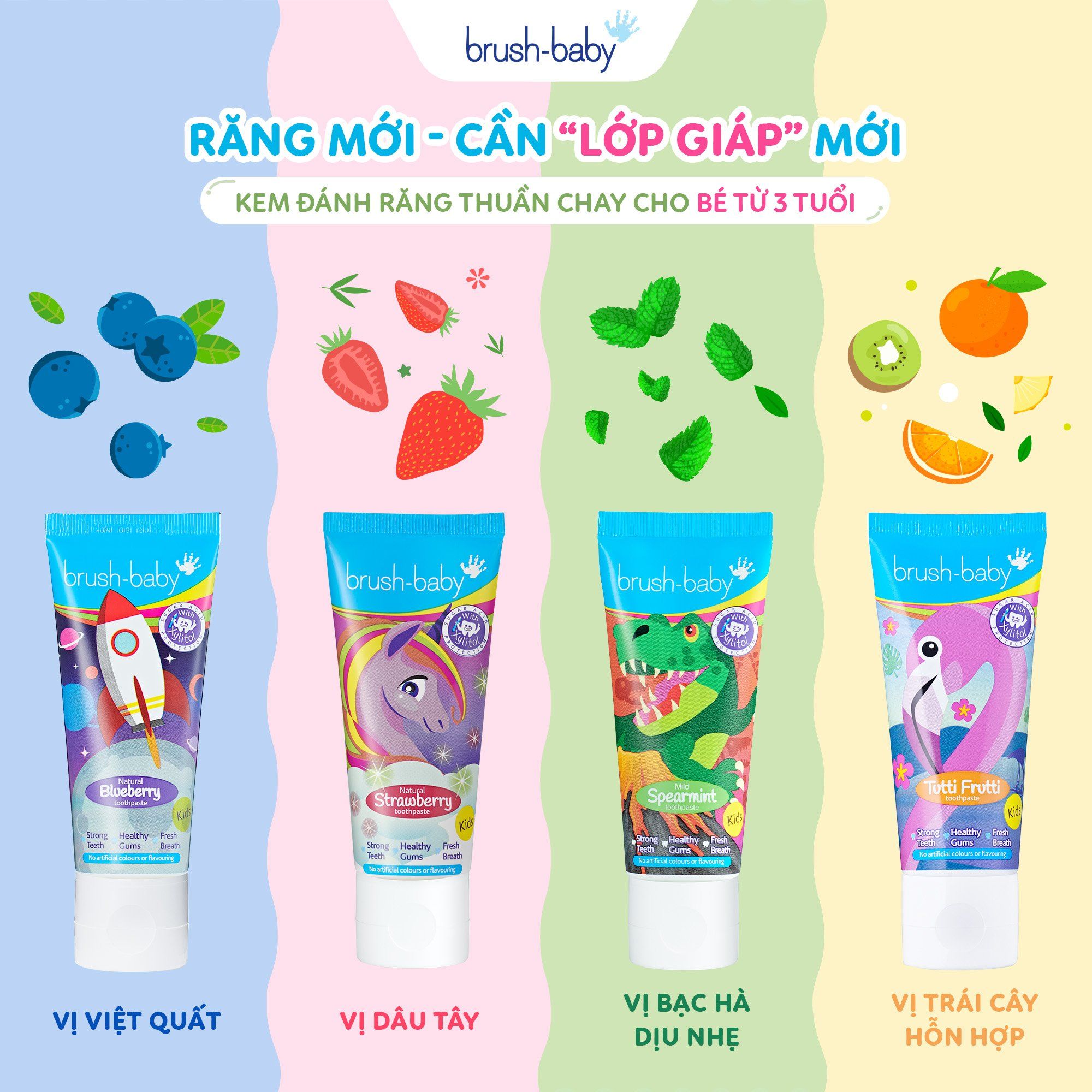 - Kem đánh răng mùi vị dịu nhẹ phù hợp với trẻ nhỏ.