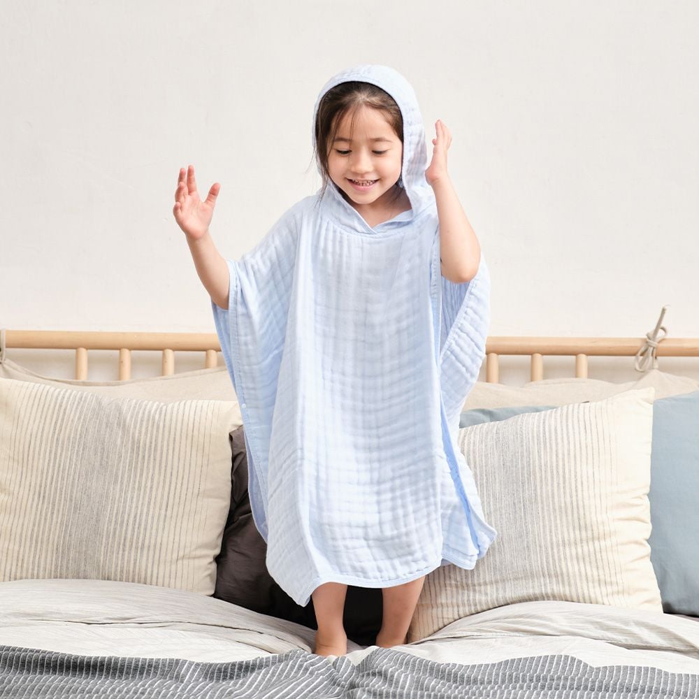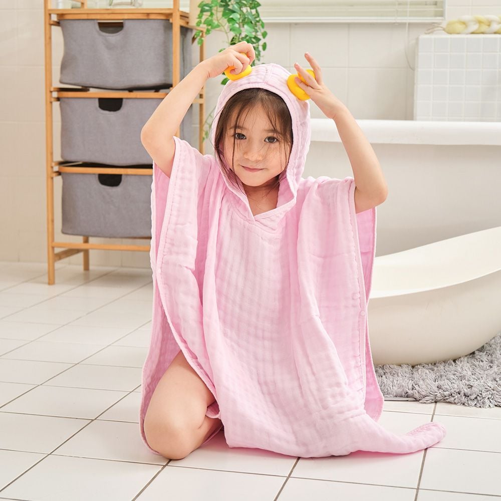 - Áo choàng bao phủ người bé, giữ ấm tốt cho bé, tránh bé bị lạnh sau khi tắm hoặc chơi nước.