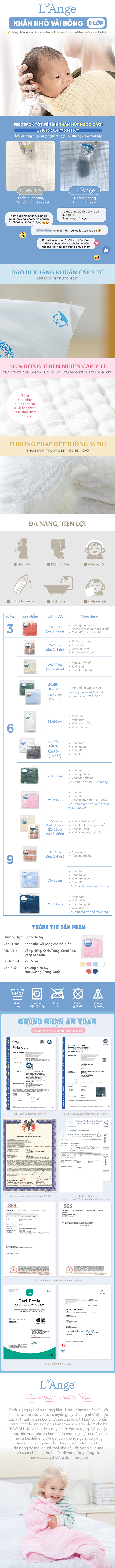 L'ANGE KHĂN SỮA/KHĂN LÓT ĐẦU/KHĂN LAU MẶT/KHĂN YẾM VẢI BÔNG 9 LỚP 22x22cm (SET 1 CÁI)
