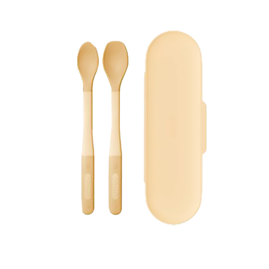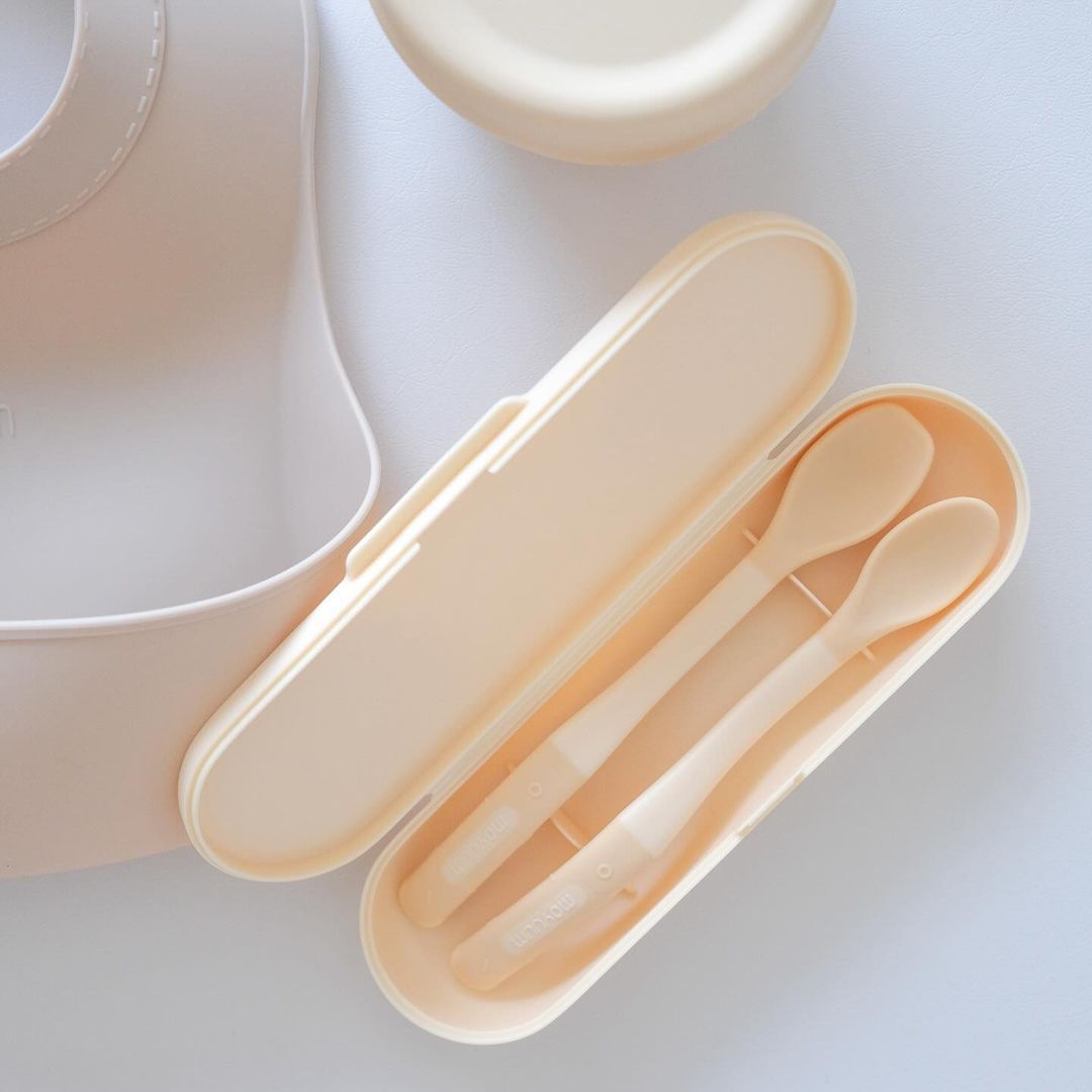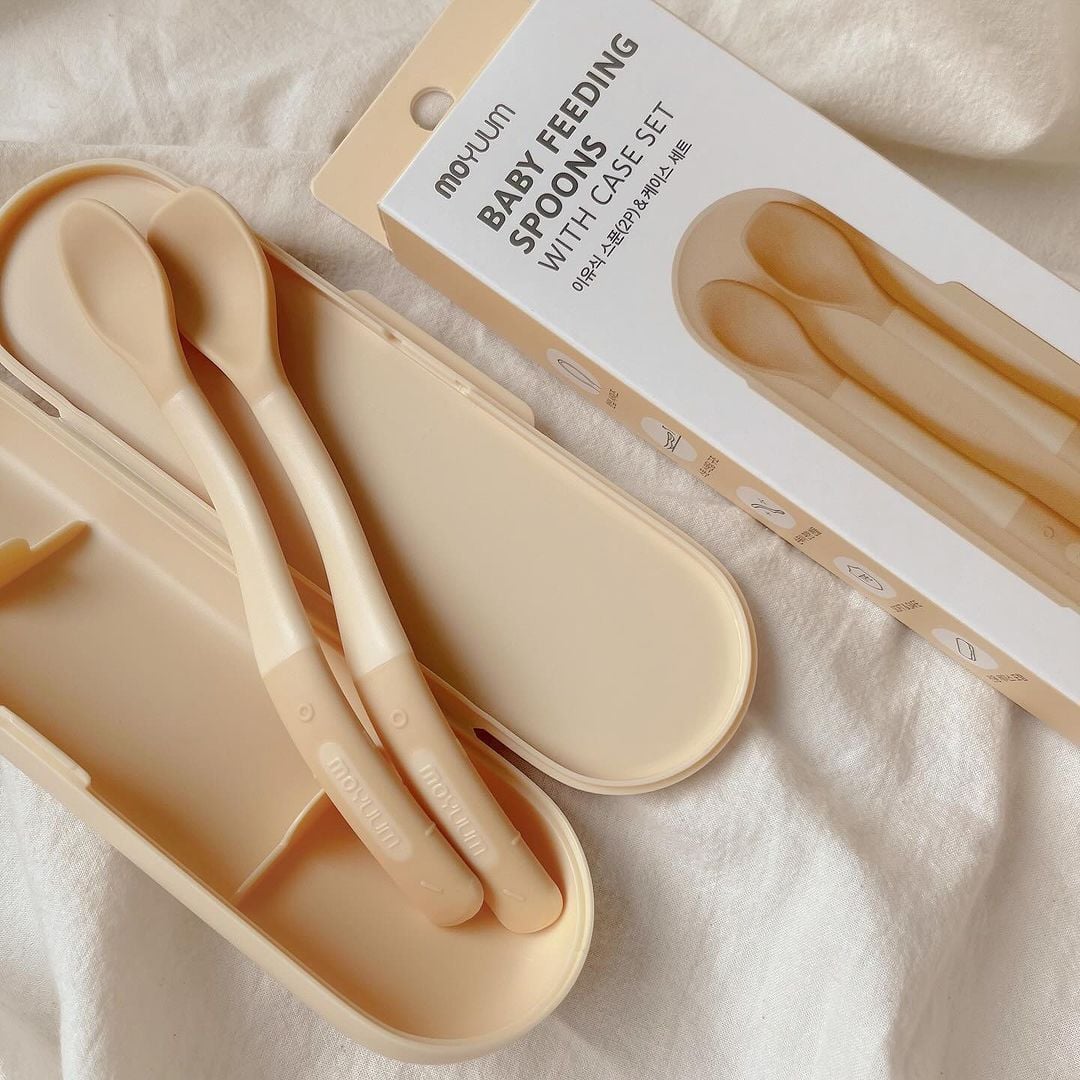 MOYUUM BỘ 2 THÌA SILICONE 2 CẤP ĐỘ CHO BÉ TẬP ĂN DẶM (KÈM HỘP ĐỰNG)
