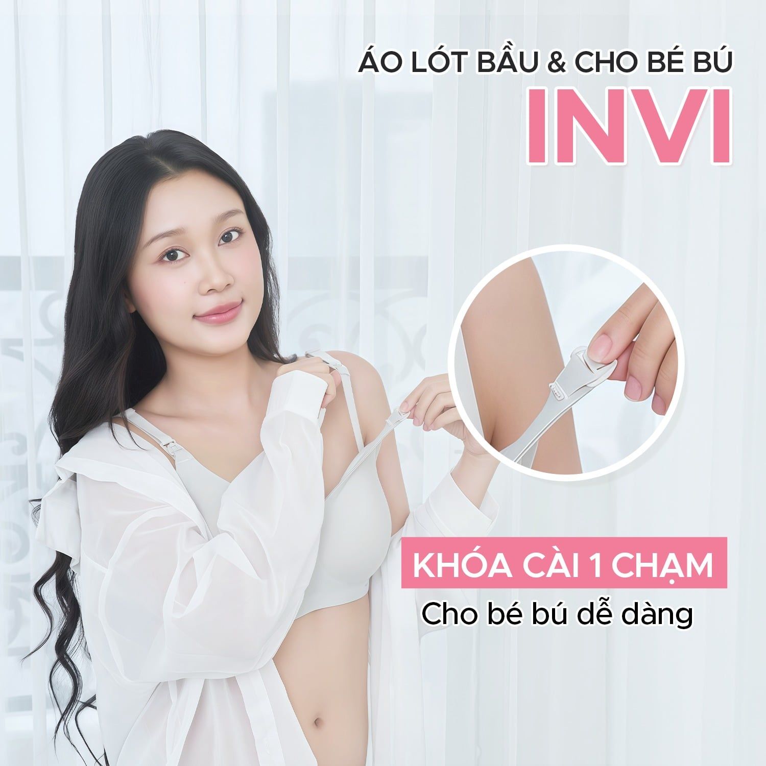 - Phần cúp áo có móc cài vào dây áo, giúp mẹ dễ dàng mở cúp chỉ bằng một tay khi cần cho bé bú.