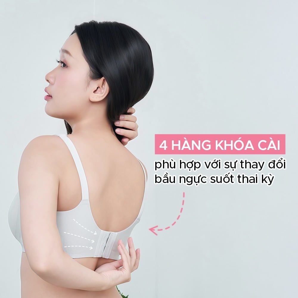 - Dây vai có thể điều chỉnh và dây lưng có 4 hàng móc cài giúp tăng cường hỗ trợ và thích ứng với sự thay đổi của cơ thể mẹ bầu trong quá trình mang thai và cho con bú.
