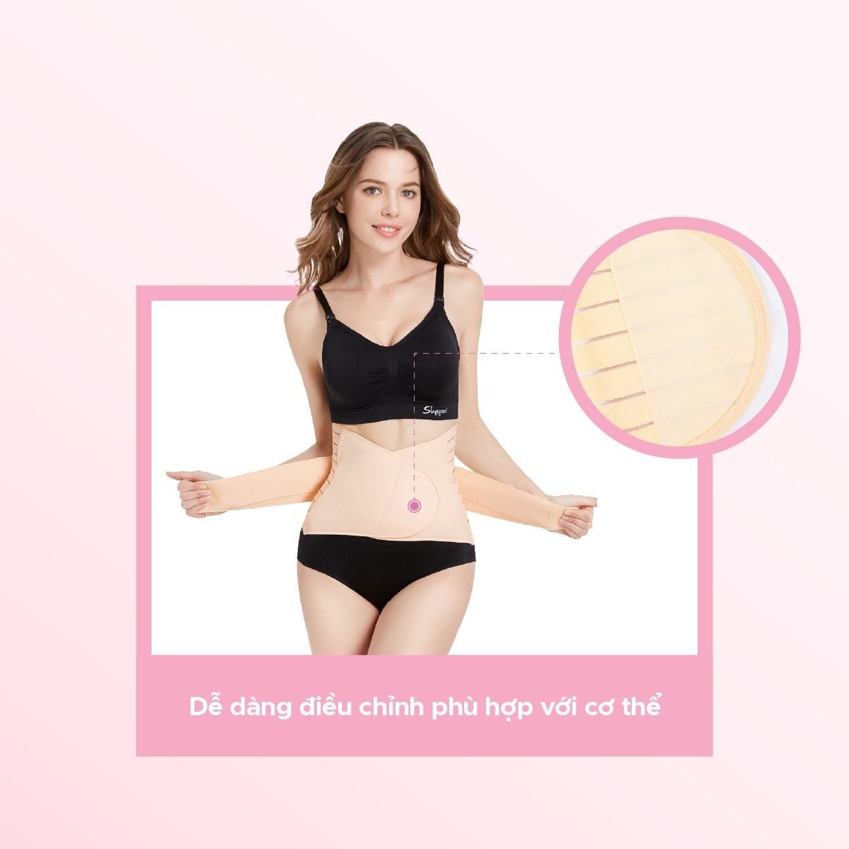 - Thiết kế đai hình chữ V giúp bảo vệ dạ dày không bị áp lực khi mẹ đeo đai, giúp mẹ thoải mái ngay cả khi ngồi.