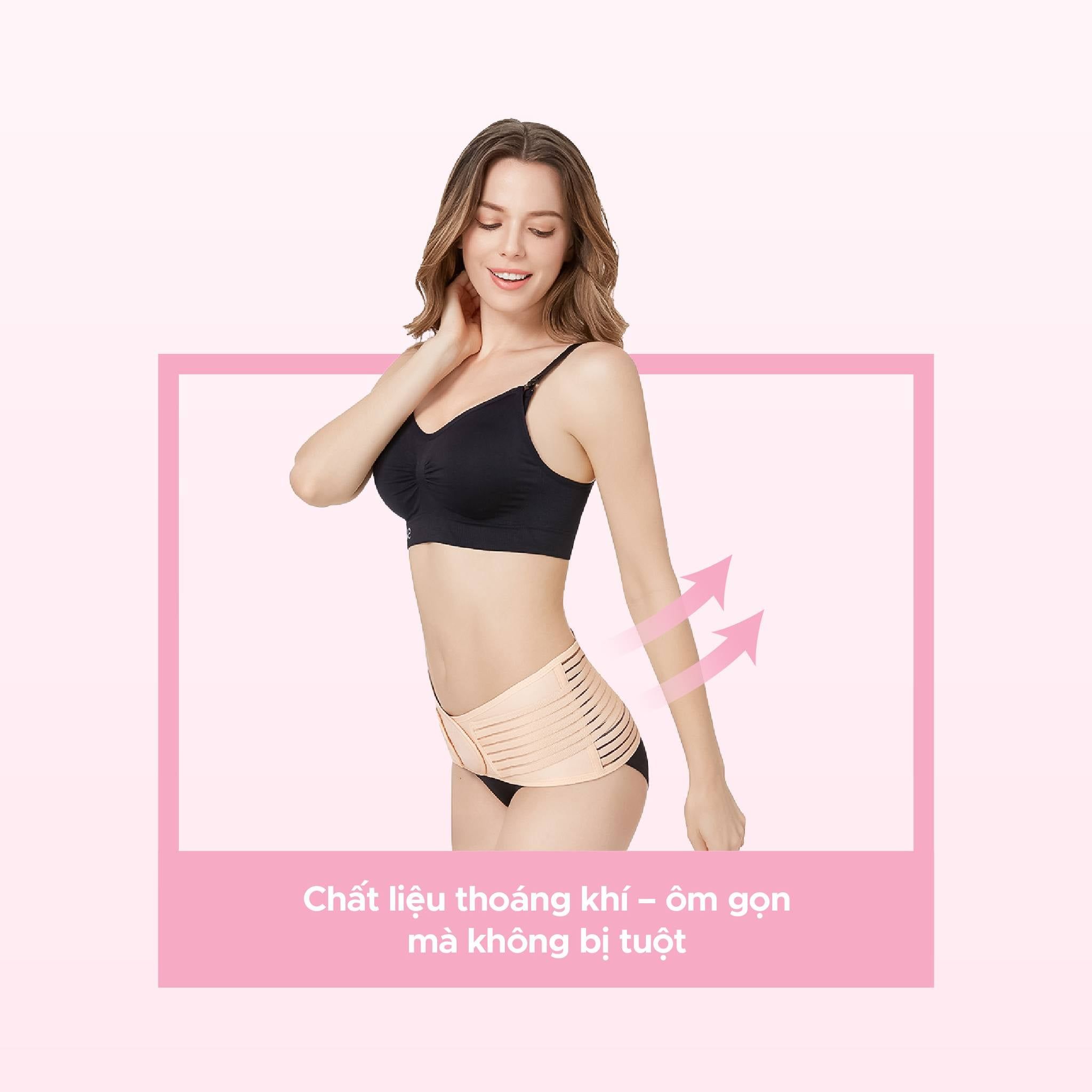 - Đai có khóa dán velcro linh hoạt, chắc chắn với chiều dài tối ưu giúp mẹ dễ dàng điều chỉnh độ nén của đai phù hợp nhất.