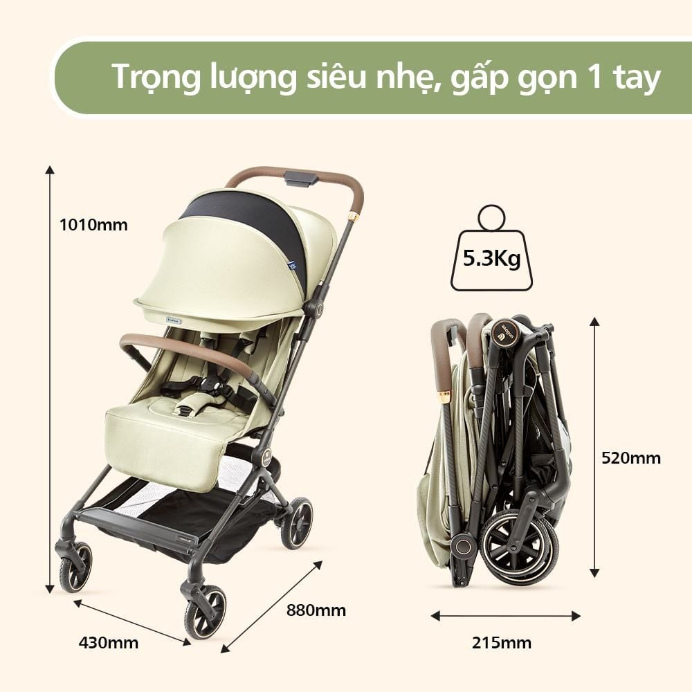 - Khối lượng xe đẩy siêu nhẹ chỉ 5,8kg (AERO) và 5,3kg (AERO X) cùng thiết kế thông minh dễ dàng gấp gọn và mở ra chỉ bằng một tay với một thao tác đơn giản giúp việc sử dụng và di chuyển xe đẩy thoải mái và nhẹ nhàng hơn rất nhiều.